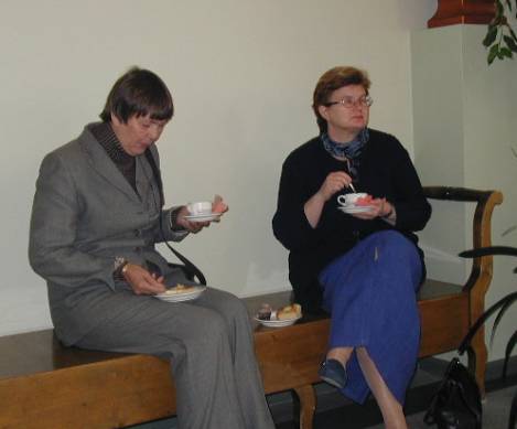 Luennolle me itse asiassa olimmekin lähdössä, sillä entinen opettajamme Leenakaisa Sonny oli lupautunut tulemaan esittelemään tämän päivän yliopistoa. Kiertelimme päärakennuksen, joka oli lähtömme jälkeen remontoitu (toivottavasti ei kuitenkaan meidän takiamme!). Luentosalissa viivähdimme hieman pidemmänkin aikaa ja siellä palasimme heti menneisyyden tunnelmiin ja mietimme, missä päin luentosalia kullakin oli tapana istuskella. Leenakaisa kertoi meille mm. nykyisestä opiskelijavalinnasta, henkilökunnasta ja rakennuksista. Halusimme tietenkin tietää, ketkä meidän aikaisesta henkilökunnasta olivat vielä työelämässä. Intelliä ei meidän opiskeluaikana vielä ollut lainkaan, joten silläkin teimme kierroksen ja Jouko Käsmä lähti esittelykierrokselle mukaamme. Kiitokset Leenakaisalle ja Joukolle esittelyistä!